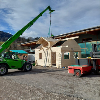 Am letzten Wochenende richtete Robin sein Abschlussmodell in der Werkstatt seines Ausbildungsbetriebs zum ersten von insgesamt drei Malen auf. Die nächsten Aufrichtungen erfolgen in Wattwil für die Ausstellung aller Modelle und schliesslich am endgültigen Standort in Nesslau